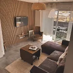 Az ingatlan rendelkezik felszerelt konyhasarokkal, amely biztosít mosogatógépet és sütőt. Az apartman úszómedencét és teraszt biztosít a vendégek kényelméért.